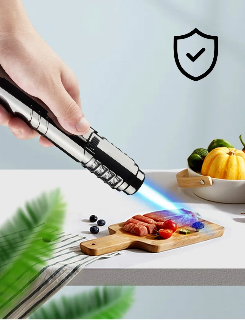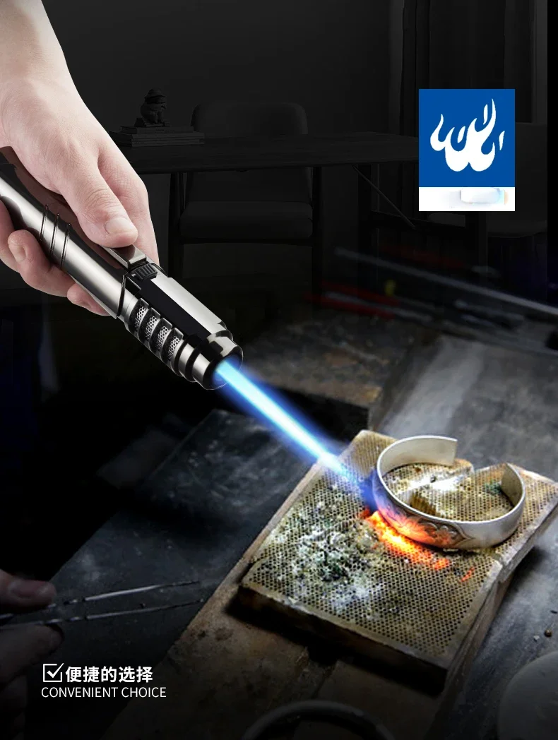 2023 Large Flame Spray Gun Metal Blue Flame 1800°c Welding Gun Outdoor Camping BBQ Ignition Tool Personalized Butane Gas Lighter